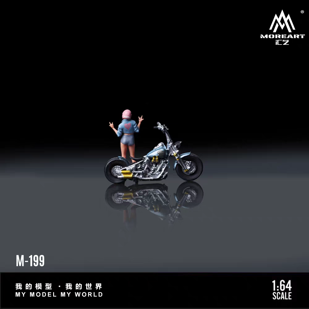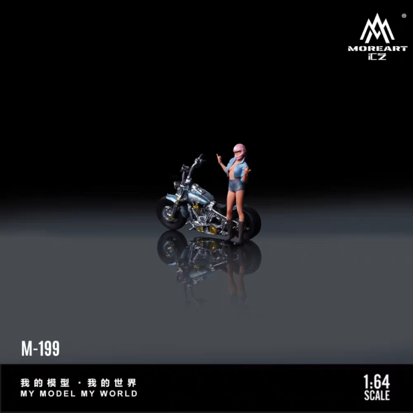 MoreArt 1:64 Harley Glacier Blue Motorcycle Cool Girl Figurine