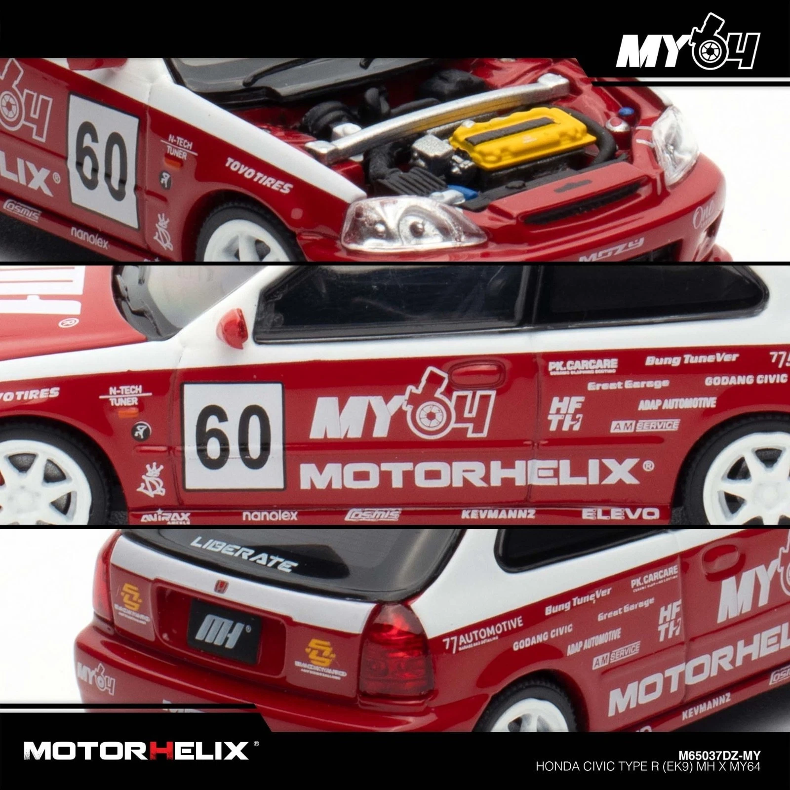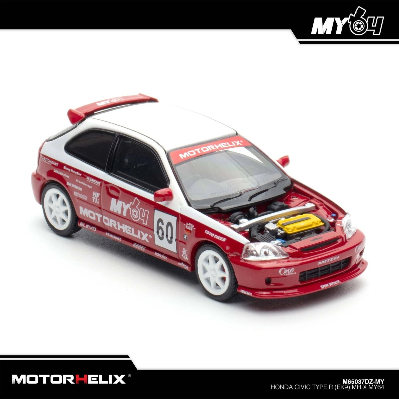 MotorHelix x MY64 1:64 Honda Civic Type R (EK9) Red TMCS 2025 Malaysia Exclusive M65037DZ