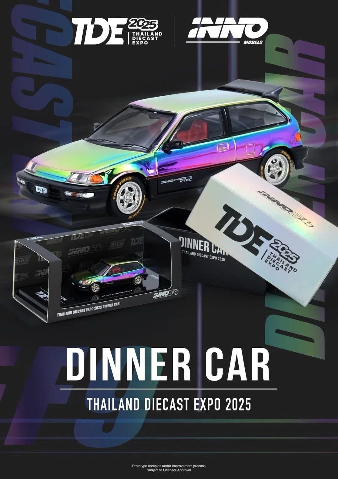 INNO64 1:64 Honda Civic EF9 Magic Chrome TDE Thailand Diecast Expo – Dinner Car